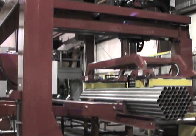 框架式龍門機(jī)器人實(shí)現(xiàn)鋼管全自動高效率搬運(yùn)、裝箱、捆扎、碼垛、發(fā)貨等工作